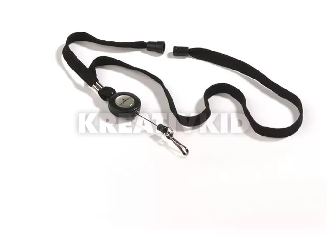 Azonosítókártya-tartó, kihúzható, patentos, fekete nyakba akasztóval, DURABLE