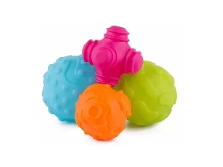 Tapintásfejlesztő bébi játékPuha, színes, különböző minták/textúrákSzem-kéz koordináció, vizuális érzékelés, motoros készségek fejlesztése6 db kislabd...