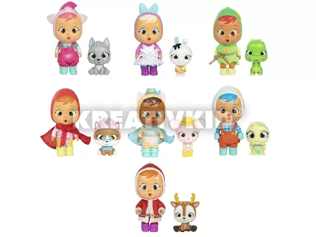 8 különböző baba, 1 ruha, 1 cipő, 4 kiegészítő, 1 matrica lap