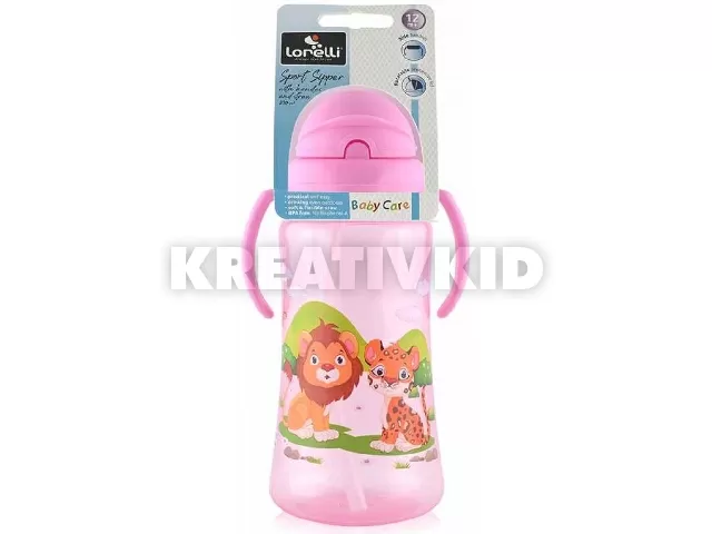 Baby Care Szafari szívószálas sportitató 330 ml - pink