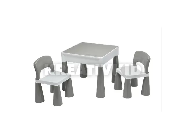 Gyerek készlet New Baby, egy asztalt és két széket tartalmaz. Az asztal nagyon praktikus, a felsõ deszka elfordításával egy tökéletes helyet kap a Lego Klasik vagy Lego Duplo építõkockák építésére. A felsõ deszka alatt tárolóhely található a játékok, rajzkészletek stb. tárolására. Ha eltávolítja a felsõ deszkát, helyet kap, ahová egy kis vizet önthet, így a gyermeke élvezheti a kedvenc vízi játékokat is, vagy használható homokozóként is.