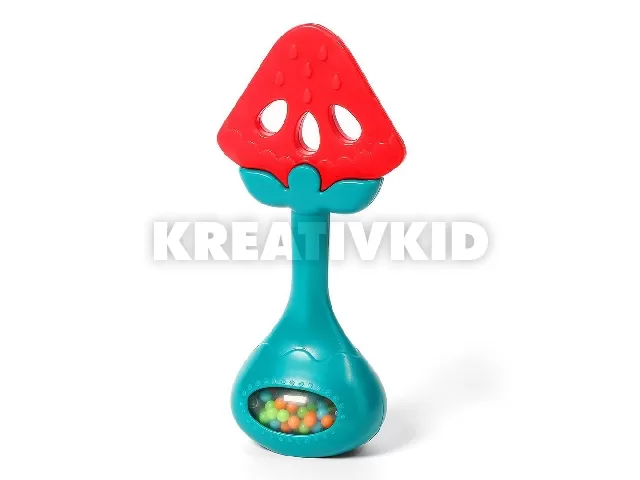 A szerkezete megkönnyíti a megfogását a kis kezek számára. A rágó és a csörgõ kombinációja tökéletes az érzékek stimulálására. Nagyszerû a baba számára, hogy gyakorolja a fogást és az egyik kezébõl a másikba történõ átvitelt.
