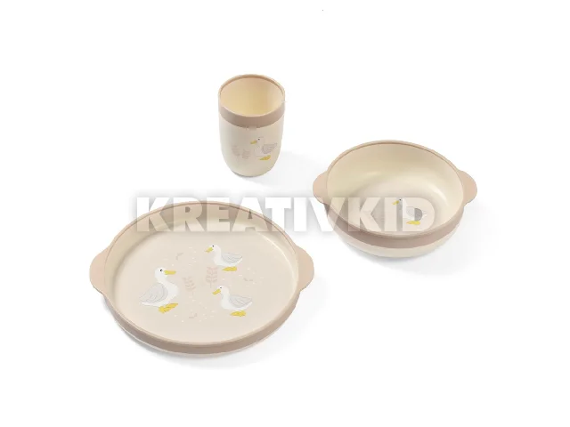 - A készlet tartalma: 1x tányér, 1x tálka, 1x pohár