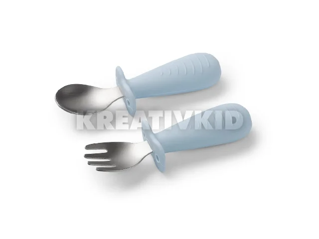 Ez a biztonságos evõeszközkészlet tökéletes a kanál és a villa használatának elsajátításához kisgyermeked számára. A készlet kiváló minõségû rozsdamentes acélból készült, míg a nyele csúszásgátló szilikonból.