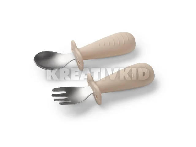 Ez a biztonságos evõeszközkészlet tökéletes a kanál és a villa használatának elsajátításához kisgyermeked számára. A készlet kiváló minõségû rozsdamentes acélból készült, míg a nyele csúszásgátló szilikonból.