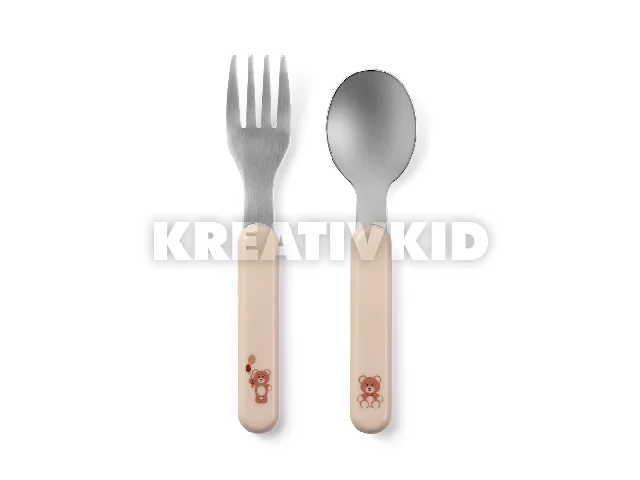 A villa és a kanál kiváló minõségû rozsdamentes acélból készült, és rendkívül tartósak. A gyermekeknek szánt fém evõeszközök tökéletesek meleg és hideg ételekhez egyaránt. Könnyen mosható kézzel vagy mosogatógépben.