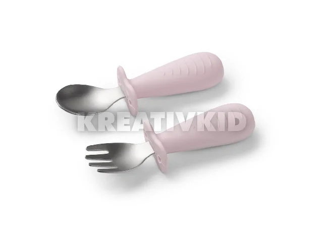 Ez a biztonságos evõeszközkészlet tökéletes a kanál és a villa használatának elsajátításához kisgyermeked számára. A készlet kiváló minõségû rozsdamentes acélból készült, míg a nyele csúszásgátló szilikonból.