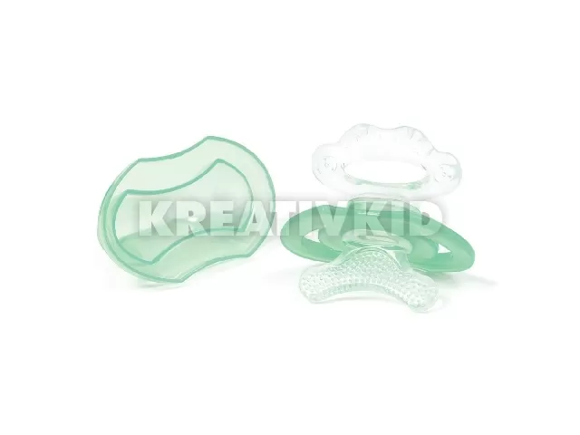 A szilikon rágóka nélkülözhetetlen eszköz a fogzáshoz. A termék kialakítása lehetõvé teszi, hogy nyugtató géllel kenje be és így ajánlja gyermekének, amikor az elsõ fogak megjelennek. Szilikon- és biszfenolmentes anyagból készül.