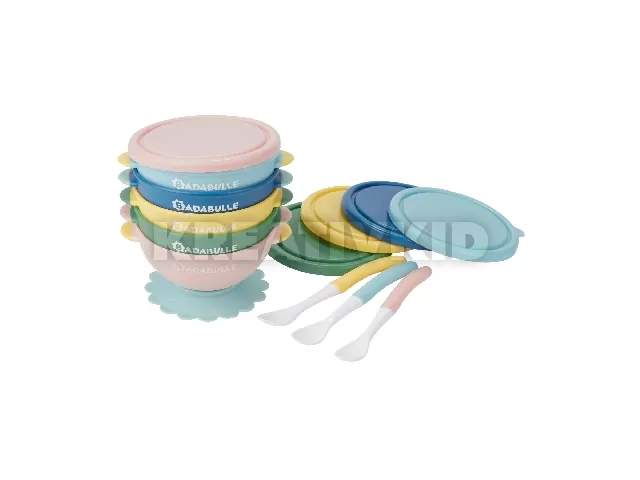 Az 5 db 330 ml-es csúszásmentes tálból és 3 db pasztell színû kanálból álló készletnek köszönhetõen még jobban feldobhatod kicsid reggelijét, ebédjét, uzsonnáját vagy akár vacsoráját!