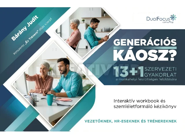 Négy generáció egy munkahelyen: Négyféle nyelv, motiváció, tempó és elvárás. Ha nincs közös norma, működési keret, megértés és elfogadás, akkor lesz helyette sértődés, konfliktus, kiégés és végül fluktuáció.F. Várkonyi Zsuzsa sokat emlegetett mondata erre a témára is nagyon igaz: Senki sem jószántából hülye. Mindenki a saját generációs élménycsomagjával, nevelési mintáival és technológiai hátterével érkezik a munka világába, és ennek megfelelően viselkedik. Ha ezt elfogadjuk, a különbségekből nem feszültség, hanem szinergia születhet. Ehhez viszont elengedhetetlen a felelősségvállalás és a hibáztatás helyett a megoldáskereső attitűd. Ez a könyv egy változásindító eszköz, amely segít csökkenteni a fluktuációt, gyorsítani a tudásátadást, és a vezetői tekintélyt új alapokra helyezi. A generációs viselkedésben megjelenő eltérések mögötti miért-ekre adott érthető magyarázatokon túl 13 azonnal bevezethető szervezeti gyakorlatot is ad a kezedbe (normaalkotó workshop, kölcsönös mentorálás, tudástranszfer sprint, retrospektív, döntésnapló, stb.). Valamint +1 feketeöves megoldást: egy komplex HR-rendszer mintáját és annak kkv-barát egyszerűsítését. Vezetőként és HR-esként fontos, hogy egy olyan szervezetikultúrát építs, ahol a Boomer tudása nem vész el, az X teherbírása érték, de nem elvárás, az Y megleli a munka értelmét, és a Z hosszú távon is el tud köteleződni. És eközben mindenki (generációtól függetlenül) EMBERnek érzi magát, nem pedig erőforrásnak.Interaktív workbookot tartasz a kezedben: infografikákkal, reflexiós kérdésekkel, kvízekkel, és QR-kódon elérhető videókkal/hanganyagokkal, hogy a tartalma ne csak egy egyszeri olvasmány legyen, hanem alkalmazható tudás. A mellékletekben tréning- és workshop tematikákat is találsz.Neked szól, ha nem csak vezetni, hanem érteni is akarod a csapatodat.Bárány Judit vagyok, szervezetfejlesztő, tréner, egyetemi oktató és a Dual Focus Consulting alapítója. Hiszek abban, hogy ha megértjük egymás különbözőségeit, az üzleti célok és az emberi jóllét kéz a kézben járhat.