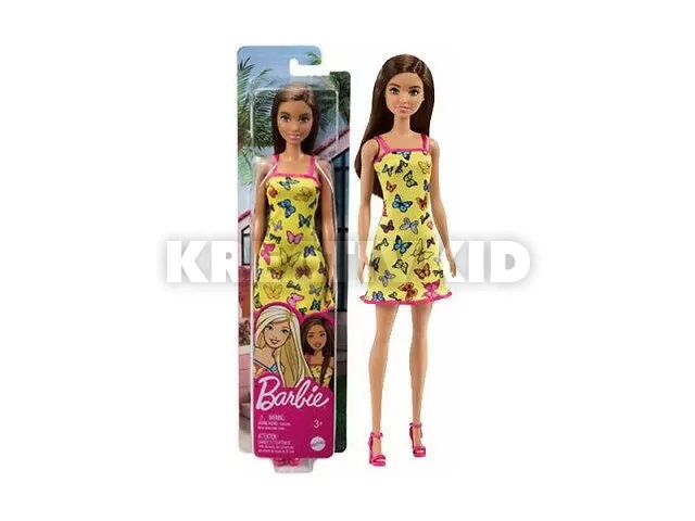 Barbie: barna hajú baba sárga,pillangós ruhában