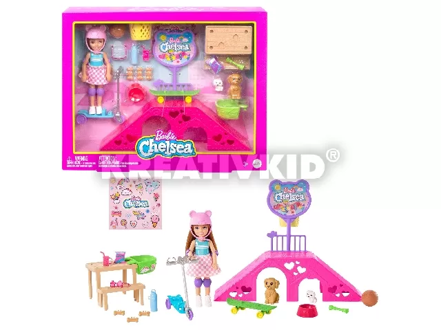 Chelsea imádja az aktív kikapcsolódást. Ha teheti, felveszi csinos bukósisakját, felpattan a rollerére és irány a gördeszka park. Természetesen kiskedvencei is vele tartanak egy szuper gördeszkán. A parkban van rámpa, piknik asztal kiskedvenc kosárral, kulacs, nasi, kosárlabdapalánk és sok minden más, hogy egy csodás napot tölthessenek szórakozással.