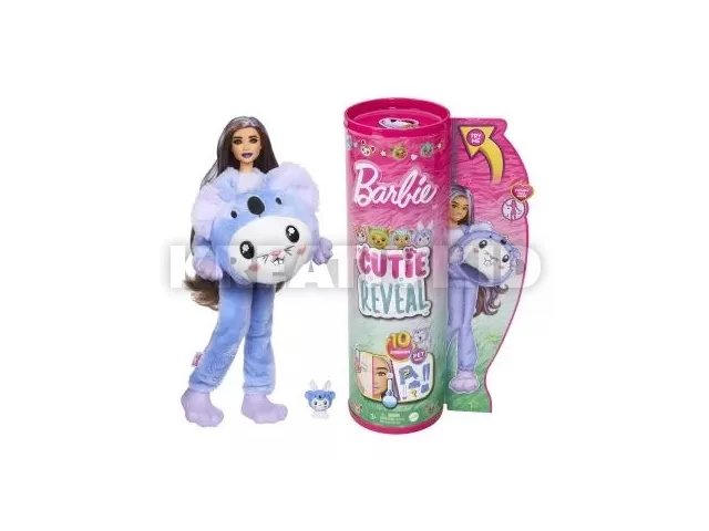 Megérkezett a Barbie Cutie Reveal legújabb, hatodik sorozata csodás, hosszú hajú babákkal, akik egészalakos állatkás jelmezt kaptak. Egy bájos nyuszi koalamacinak öltözve alig várja, hogy puha kedvenc lehessen. A készletek meglepetés kiegészítőket is rejtenek, köztük egy a karakterhez illő kis kedvencet. A puha jelmezből egy stílusos baba bukkan elő csodás részletekkel. Több ponton hajlítható végtagjainak köszönhetően a gyerekek rengeteg pózba beállíthatják. A meglepetéseknek itt még nincs vége. Hideg és meleg víz segítségével megváltoztatható a baba és kiskedvence kinézete.