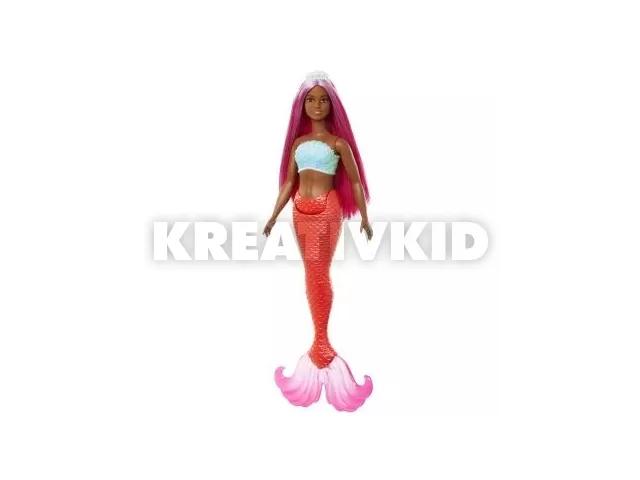 Barbie Dreamtopia: Színes hajú sellő baba narancssárga színű uszonnyal. A baba vibrálóan színes uszonnyal, fantasztikus, színes hajjal rendelkezik. Melltartóján óceán-ihlette részletek láthatók, törzse dönthető. A baba nem áll meg magától. A színek és a díszítések eltérhetnek a képen láthatótól.