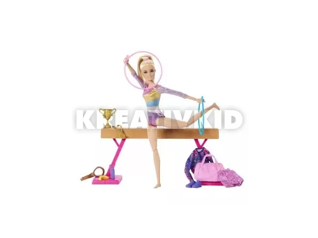 A Barbie tornász játékszett segítségével, a gyerekek elképzelhetik milyen érzés lehet egy versenyen szerepelni. A baba csillogó, színes tornadresszt, szőke, csinos kontyba fogott frizurát és visszafogott sminket visel, a bemelegítéshez pedig egy trendi melegítőt is felvehet. A derekára csíptethető kiegészítő segítségével a kézenállás és a szaltó is könnyen eljátszható. A kezébe adható karikák, buzogányok és a gerenda tehetik teljessé a játékélményt.