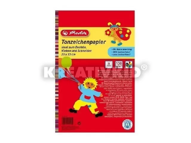 Barkácskarton 33x23 cm-es méretben, 20 ív/csomag, 120g/m2-es kartonból, 10 különböző színben, 2 db/szín/csomag, Blauer Engel környezetbarát minősítéssel.