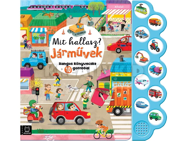 A gyerekek nyitottak a világra, és minden érzékszervükkel a megismerésére törekszenek. A hangos könyvecske gazdag illusztrációival és hangmoduljaival segít minél jobban kielégíteni a kíváncsiságukat. Ezzel a könyvvel nemcsak jobban megismerik a járműveket, hanem a versek megismétlésével és a hangok meghallgatásával fejlesztik hallásukat és memóriájukat is. Mindeközben tanulják az összpontosítást, térben tájékozódást és fejlesztik a megfigyelőképességüket. A felvételek meghallgatásához nyomd meg a kört. A kikapcsoláshoz nyomd meg még egyszer.