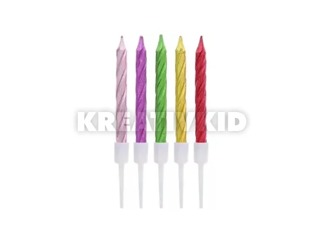 Beauty & Charm: Metál fényű csavart gyertya - 8 cm, 10 db-os