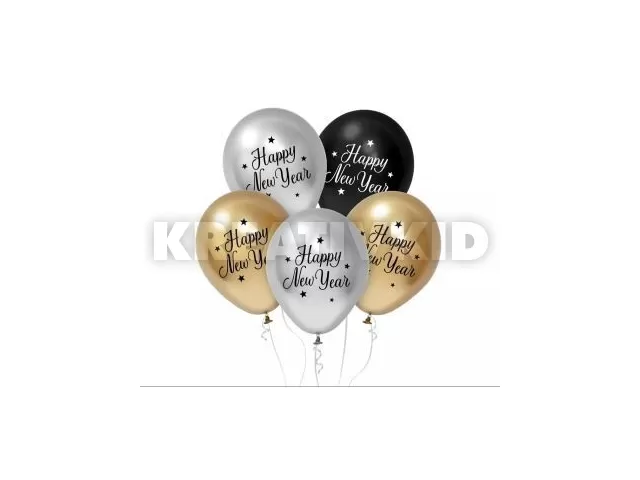 Beauty&Charm: Dekorációs lufiszett „Happy New Year" felirattal, 30 cm - 5 db-os