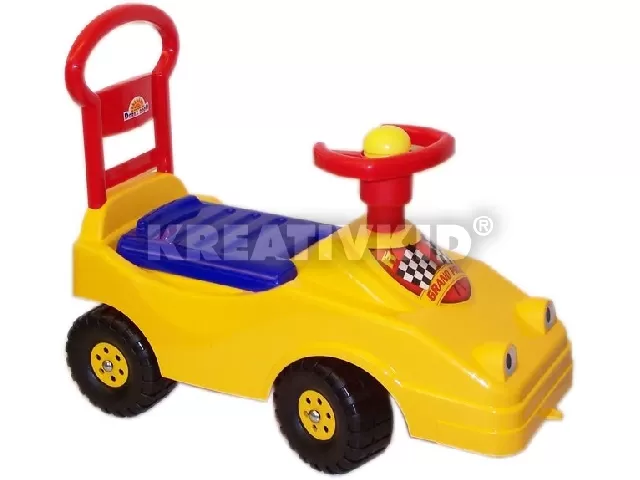 Száguldozz és erősítsd a lábaidat a bébitaxival! A Verseny bébitaxi egy vagány, erős műanyagból készült lábbal hajtós járgány, amivel a pici a lábait tudja erősebbé tenni. A taxi kormányozható, a dudája sípoló hangot ad ki magából, az ülést felhajtva egy tárolót találsz, ahova a kisgyerek a kincseit tudja tenni. A Verseny bébitaxi méretei: 57 x 23 x 44 cm. A játékok külön kaphatóak. A megjegyzésben kérjük tüntesd fel, hogy melyik változatot szeretnéd!