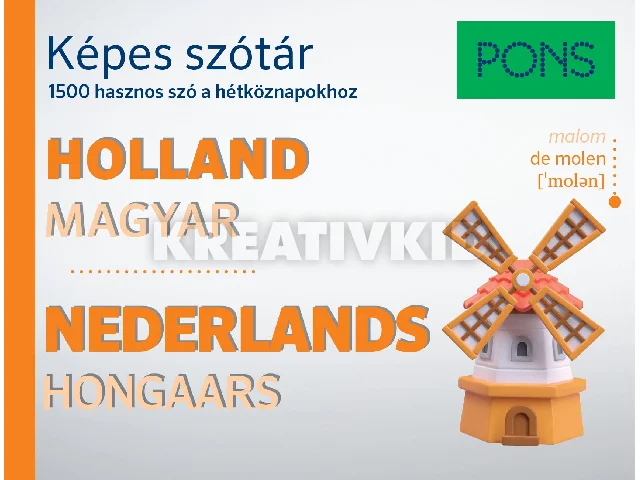 Mindig is érdekelt a holland nyelv? Holland-magyar szótárt keresel? Esetleg Hollandiába utaznál vagy egy holland barátoddal szeretnéd megkönnyíteni a kommunikációt? A PONS Holland-magyar Képes szótára tökéletes megoldás minderre, ráadásul remek társ a holland nyelvtanulásban is. Az 1500 szót tartalmazó holland szótár ideális kísérőnk lehet a mindennapi életben:1. Fordítási segítségHolland szótárunk a mindennapi élet kilenc legfontosabb területét öleli fel. Ha úgy adódik, akár a háztartási teendők közepette, akár a munkahelyen vagy éppen útközben is elég felütni a megfelelő fejezetet, s máris ott vannak a szükséges holland szavak. De ha éppen egy bizonyos szóra van szükséged, akkor egyszerűen lapozz hátra az ábécébe rendezett szószedethez.2. A legfontosabb mondatokAz egyszerű szókép megfeleltetés mellett helyet kaptak az egyes szituációkban leggyakrabban használatos holland mondatok is.3. Helyes kiejtésAz egyes szavak és mondatok mellett megtalálható a kiejtés szerinti átírás, mely megkönnyíti a helyes holland ejtést. A magyar átírás a szótárban közvetlenül a szavak mellett kapott helyet, a holland fonetikai jelek a könyv első oldalán találhatók.4. Szavak nélkülAbban az esetben, ha mégiscsak elakadna a szavad, nem probléma: Mutass egyszerűen a megfelelő képre, így bárhol a világon megérteted magad!