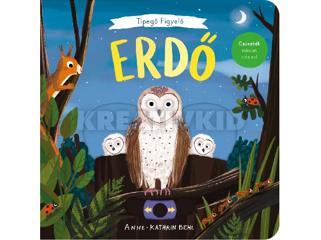 Harkály, szarvas, róka, bagoly, no meg az apróbbak, a hernyók, katicabogarak, és a föld alatt alagutakat ásó vakond! Mennyi bámulatos élőlény lakja az erdőt! A csúszkákat húzogatva-tologatva életre kelnek a könyv lapjai. A művészi, valósághű illusztrációk segítenek a természetben is felismerni a könyvben szereplő állatokat.A Tipegő figyelő sorozat szabadban élő kis állatokat mutat be látványos és szakszerű ábrázolással. A művészi rajzok és a megmozgatható állatfigurák a természet szeretetére nevelnek. 2 éves kortól ajánljuk!