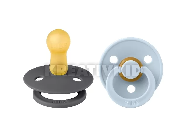 BIBS játszócumi - Colour natúr kaucsuk 6-18 hó grafit és pasztellkék 2 db