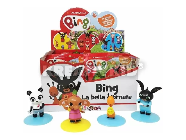 A Bing és barátai népszerű mesesorozat szereplői meglepetés figuraként érkeznek a gyerekekhez. Mindegyik figura színes, műanyag talpon áll, így az aranyos mesefigurák a gyerekszoba polcainak lakóivá válhatnak. Egy meglepetés zacskó 1 db figurát tartalmaz.