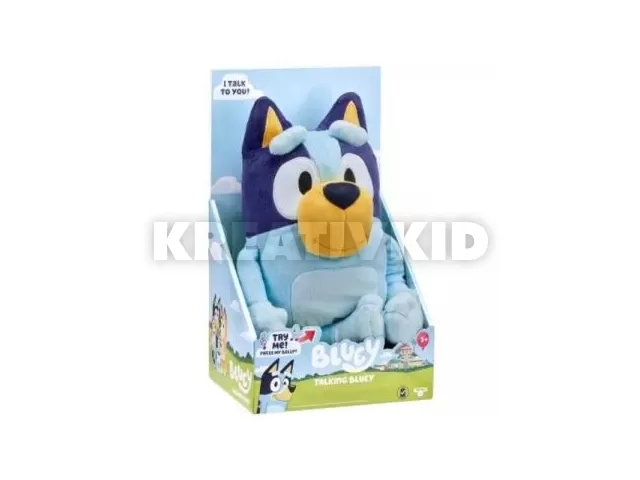 A Bluey interaktív plüssel, amely 33 cm hosszú is lehet, akár otthon is újraalkothatod kedvenc jeleneteidet a sorozatból. Bluey különleges beszélő változata többnyelvű, és 9 mondatot tud kiejteni 3 különböző nyelven - lengyelül, románul és magyarul! Egyszerűen csak csúsztasd el a játék belsejében lévő kapcsolót, hogy kiválaszd a beszélni kívánt nyelvet. A játékot ugyanitt ki is kapcsolhatod. Ezután nyomd meg Bluey pocakját, hogy meghallgasd a 9 vicces mondatot Bluey TV műsorából az általad választott nyelven. Még a Bluey főcímdalt is elénekelheted! Bluey tökéletes méretű az öleléshez. Plüssből készült, hosszabb sörtékkel és rögzített varrásokkal - ezért olyan puha.