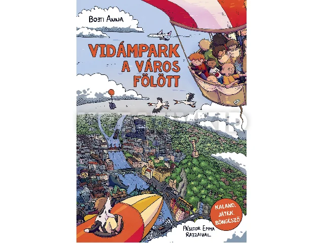 Ismered a régi Vidámparkot? Igen, ott az állatkert mögött! Ahol nyikorogva körbe-körbejár a körhinta, aminek az egyik űrhajója, az a piros, sárga csíkos orrú fel tud repülni a magasba... Pattanj csak be, és repüld körbe a?várost! Odafenn rengeteg érdekes alakkal találkozhatsz. Az egyik háztetőn egy lovagszobor epekedik a királylány után, a másikon egy kislány keresi a?macskáját, a fák lombjában egy elkóborolt papagáj szomorkodik, a fürdőben pedig egy kisfiú elvesztette a nagypapáját. Segíts nekik, hiszen te mindent látsz az űrhajódból! Mert ebben a könyvben TE vagy a főszereplő! Lapozz, ahova szeretnél, oldd meg a rejtvényeket, böngészd a hatalmas, részletgazdag képeket, és irányítsd TE a történetet!