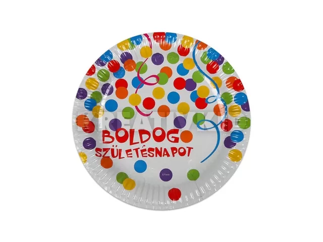 Boldog születésnapot feliratos 6 darabos papírtányér - 23 cm, konfetti mintás