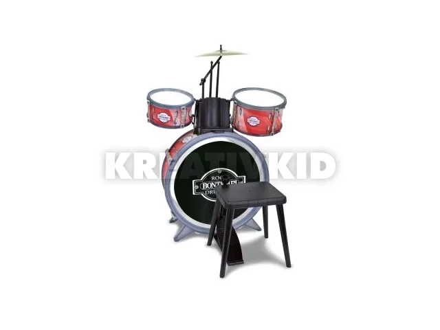 Bontempi 4 részes rock dob szett kisszékkel piros és fekete színben. A készlet egy basszusdobból, egy pedálból, 2 oldaldobból, egy cintányérból, valamint kettő, apró kezekbe tökéletesen illő dobverőből áll. A dobozban egy kisszéket is tartalmaz.