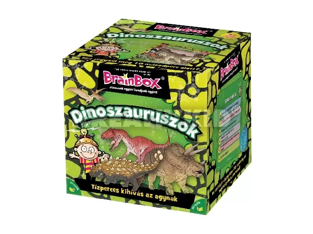 Bővítsd tudásod és ismerd meg a dinoszauruszokat! A Brainbox – Dinoszauruszok készlet nagyszerű játék saját memóriád megedzésére! Húzz egy lapot, majd fordítsd el a homokórát! 10 másodperced van a kártyán található információkat megjegyezni. Amint lejárt az időt, dobókocka segítségével kapott számot megkeresheted a kártya másik oldalán. A szám melletti kérdés a 10 másodpercig tanult információk egyikére kérdezz rá. Válaszold meg helyesen a feladványt, majd tartsd meg a lapot. A játékot az nyeri, aki a legtöbb kérdésre tudja helyesen a választ, így a legtöbb kártyával rendelkezik. A Brainbox – Dinoszauruszok készlet egyszerre fejleszti a memóriádat és segít megismerni a dinoszauruszok kora legérdekesebb információit. Éld át a tanulás izgalmát és versenyezz barátaiddal, ki tudja a legtöbb információt megjegyezni a dínókról. Szórakoztató játék, mely segít a megfigyelőképességed fejlesztésében. A készlet tartalmazza a dinoszauruszos kártyákat és az 1 db homokórát.