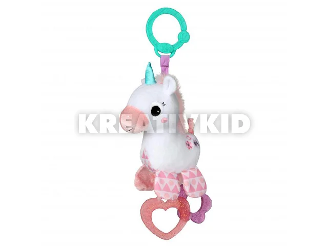 Mindenn kis hercegnõnek szüksége van egy varázslatos unikornisra. Az aranyos Sparkle & Shine plüss unikornissal a kis hercegnõ bárhol és bármikor játszhat. Két rágókával, egy virág és egy szív alakúval díszítve. A C-karika segítségével a babahordozók, és babakocsik nagy többségére rögzíthetõ.