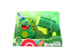 Szappanbuborékos játékkészlet, amely tartalmaz egy kézi tartozékot a buborékok készítéséhez és egy dinoszaurusz alakú tartozékot a buborékok elkapásáh...