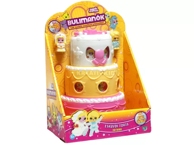 A szett tartalma 1 db esküvői torta tartódoboz, 2 darab műanyag maci, 2 darab gumiból készült jelmezzel, akasztóval és akasztóbehúzóval.