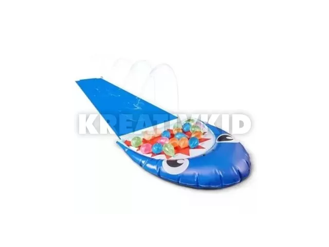 Bunch O Balloons: Cápa mintájú vizes csúszószőnyeg vízibombákkal - 480 cm. Könnyen felállítható, a csomagban több mint 100 vízibomba is található.
