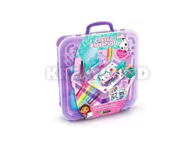 Megérkezett a Gabi babaháza Airbrush színezőkészlet, amivel varázslatos rajzokat készíthetsz, ráadásul egy kompakt táskában érkezik, így bárhová magaddal viheted! Hogy mit találsz a szettben? Lássuk csak! 10 papírlapot a kezdéshez, 10 stencilt mintákkal, 1 festékszóró pisztolyt, hozzá 8 különböző színű filcet, és még egy matrica ívet is az utolsó simításokhoz. Nyisd el a táskát, és fordítsd úgy, hogy a rajzoló tálca legyen előtted. Helyezz rá egy papírt, és válassz egy stencilt, amit ráillesztesz. Helyezd a fekete filcet a festékszóróba, hogy először a kontúrokat rajzolhasd meg. Nyomd meg a gombot a festékszórón. A filcekkel hagyományos módon is rajzolhatsz.