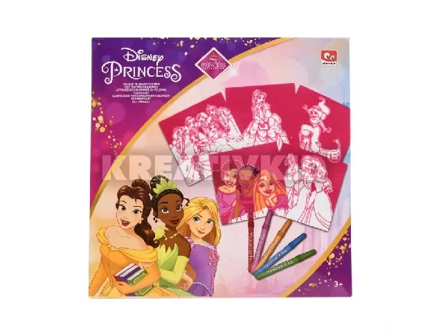 Canenco Disney Princess bársonyos színező szett, 5 db-os 18x18 cm