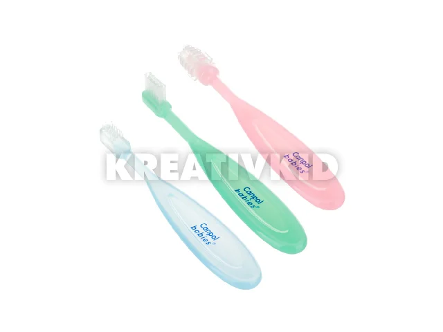 - Három fogkeféből áll: egy fogínymasszírozó fogkefe fogatlan gyermekek számára (1); egy fogkefe az első fogak mosására (2); egy klasszikus fogkefe puha sörtékkel nagyobb gyermekek számára (3)