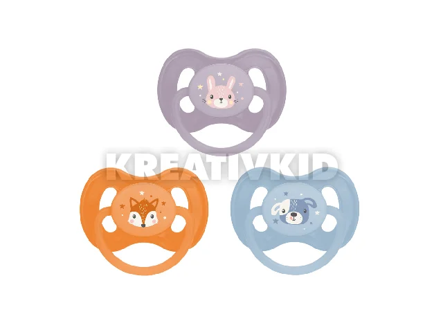 Az aranyos CUTE ANIMALS kollekcióhoz tartozó cumi szívókája természetes kaucsukból készült, amely enyhén sárgás és matt felületű. A cseresznye formájú szívóka, valamint a pajzson található speciális szellőzőnyílások biztosítják a megfelelő légáramlást, így csökkentik a bőrirritáció kockázatát. A kényelmes fogantyú megkönnyíti a cumi átadását a babának, illetve a cumiláncra vagy szalagra történő rögzítését. A cumik többféle változatban elérhetők, BPA-t nem tartalmaznak.