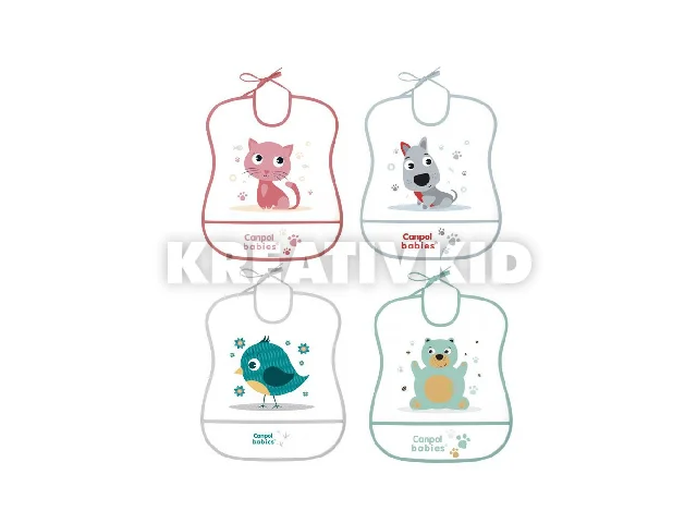- A tartós PEVA fóliából készült CUTE ANIMALS előke védi a ruhákat étkezés közben
