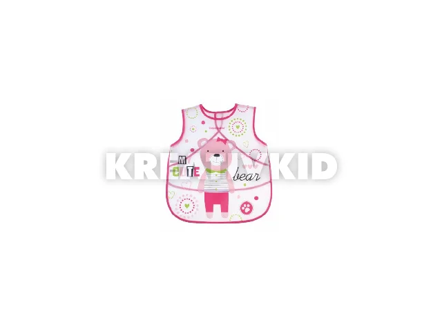 - Puha és könnyen mosható anyagból készült, nagy zsebbel ellátva, amely az ételmaradékokat felfogja