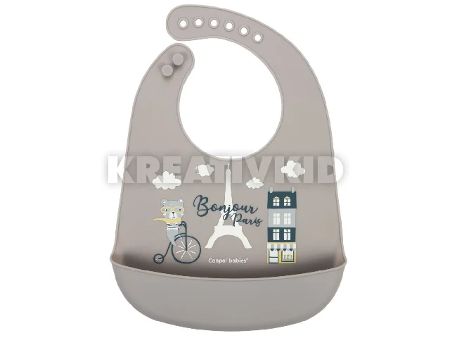 Canpol babies Szilikon zsebes előke, BONJOUR PARIS - navy bézs