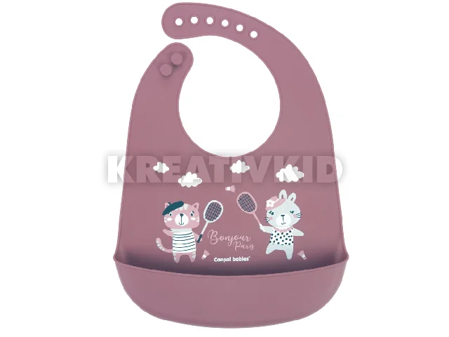 Canpol babies Szilikon zsebes előke, BONJOUR PARIS - sötétpiros