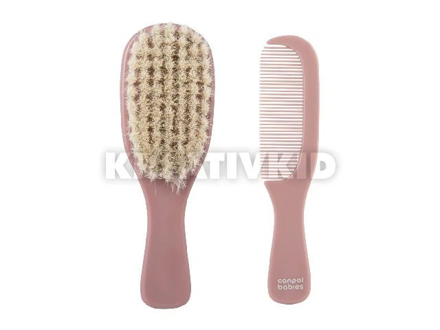 Canpol babies Természetes sörtés hajkefe és fésű GOLD - rózsaszín