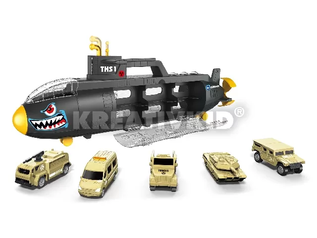 Tárold és szállítsd katonai járműveidet a lehető legvagányabb módon! A Cápa garázs készlet 6 járművel tökéletes dísze lesz szobádnak. A ragadozó belsejébe egy egész katonai egységet rejthetsz el, egy tankot, 4 autót és még egy helikoptert is. Gurítsd az autókat a helyszínre vagy ha erősítésre van szükség vesd be helikopteredet is a nagy ütközetbe. A játék végeztével pedig a cápa formájú tárolódba egyszerűen el tudod helyezni katonai egységedet. A garázs csukható oldalának és fogantyújának köszönhetően pedig akár magaddal is viheted egy hosszú út alkalmával. A készlet tartalmazza a 6 darab játék járművet, egy tankot, 4 db autót, egy helikoptert és a cápa formájú garázst. A csomagolás mérete 58 x 23 x 11 cm. A játékot 3 éves kortól ajánljuk.