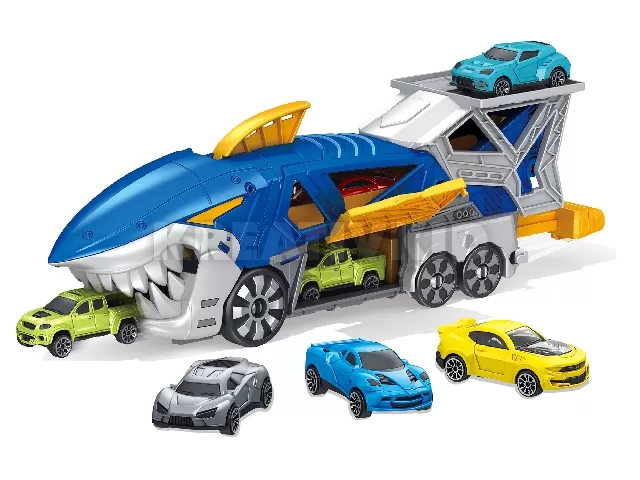 Az autókat manuálisan, a képen látható gumis kilövő kar felhúzásával és elengedésével lehet kilőni. A cápa két szintes, az alsó részről lövi ki a kar segítségével az autókat. A fenti részt a cápa uszonyának a megnyomásával lehet bedönteni, így onnan is ki tudnak gurulni az autók.