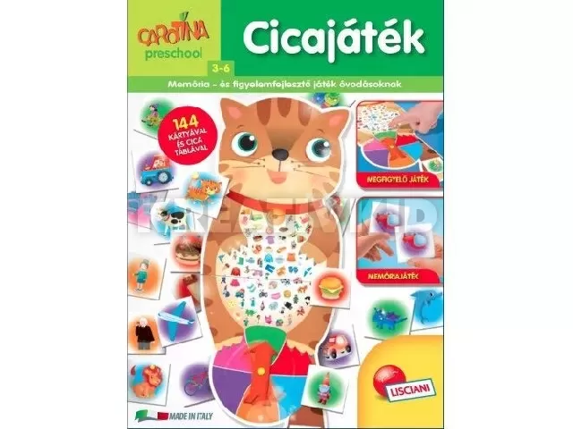 Fejleszd gyermeked memóriáját és figyelmét a Carotina cicás memóriajátékkal! A 144 db színes kártyával és az aranyos cica alakú játéktáblával a játék nem csupán szórakoztató, de ösztönzi a kiváncsiságot, fejleszti a logikát, a koncentrációt és a megfigyelést is.