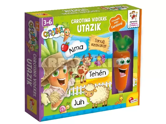 Carotina szereti a természetet, ezért szeret vidéken lenni! Az egyszerű és szórakoztató felada-tok segítségével sok állattartással kapcsolatos szót ismerhetsz meg. A válaszhoz használd a Carotina Beszélő Tollat. Keresd meg a keret elemeit a középső képen! A puzzle hátoldalán pedig rejtvényeket fedezhetsz fel. Jó szórakozást! Egyszerű és szórakoztató rejtvények és ki-rakós játékok várnak a vidéki élet és az állattartás világában.